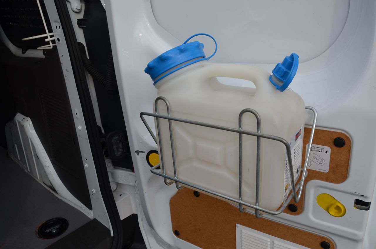 soporte para bidón de garrafa en puertas trasera y extintores.